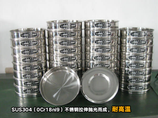篩框采用SUS304(0Cr18ni9)不銹鋼拉伸拋光而成,壁厚0.6毫米,表面光可鑒人,整體成型堅固耐用,沒有磁性,篩網(wǎng)與篩框通過錫焊固定,不會松弛。能耐300度以下高溫。